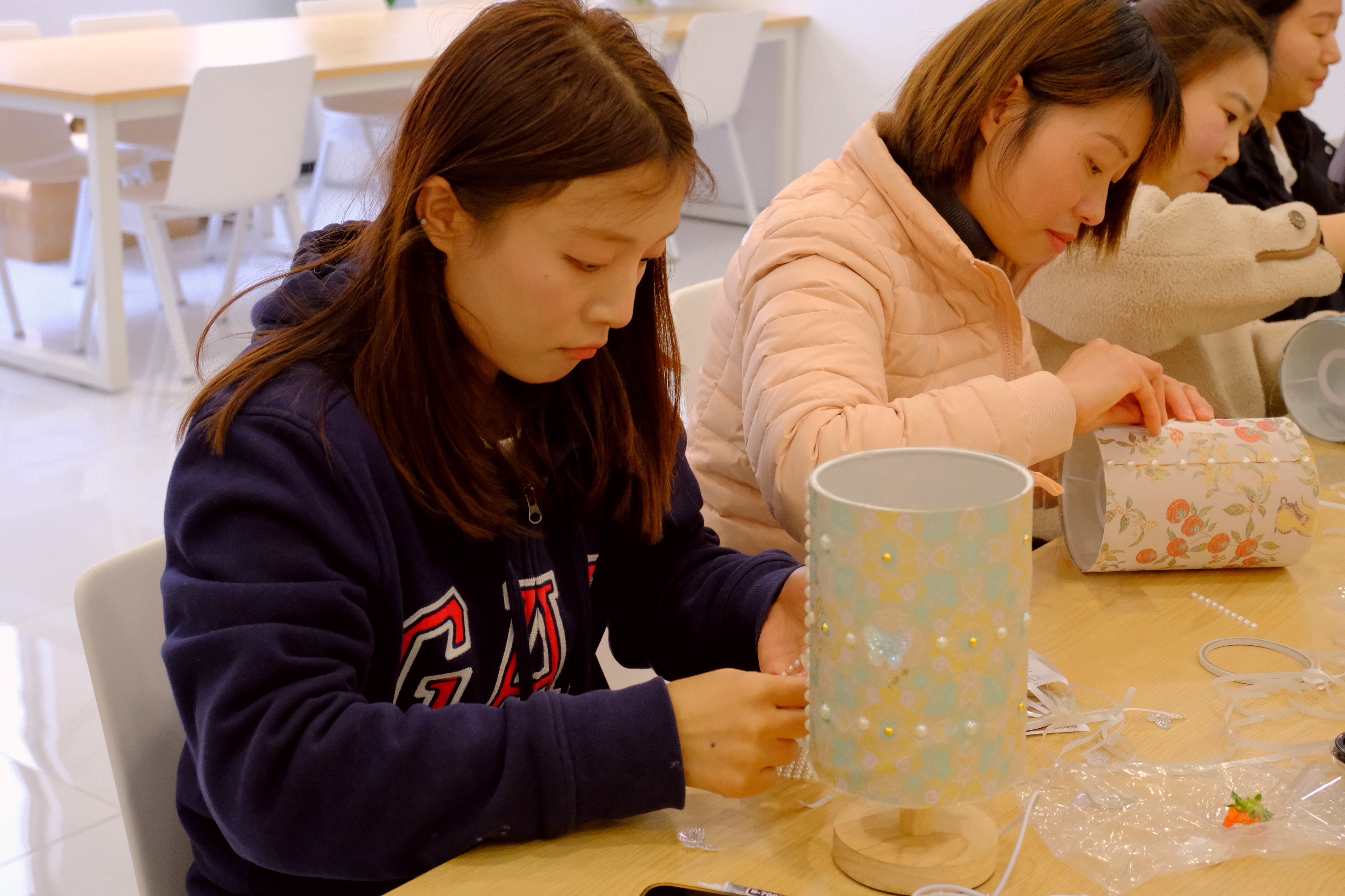 大家一边制作、一边轻声交流