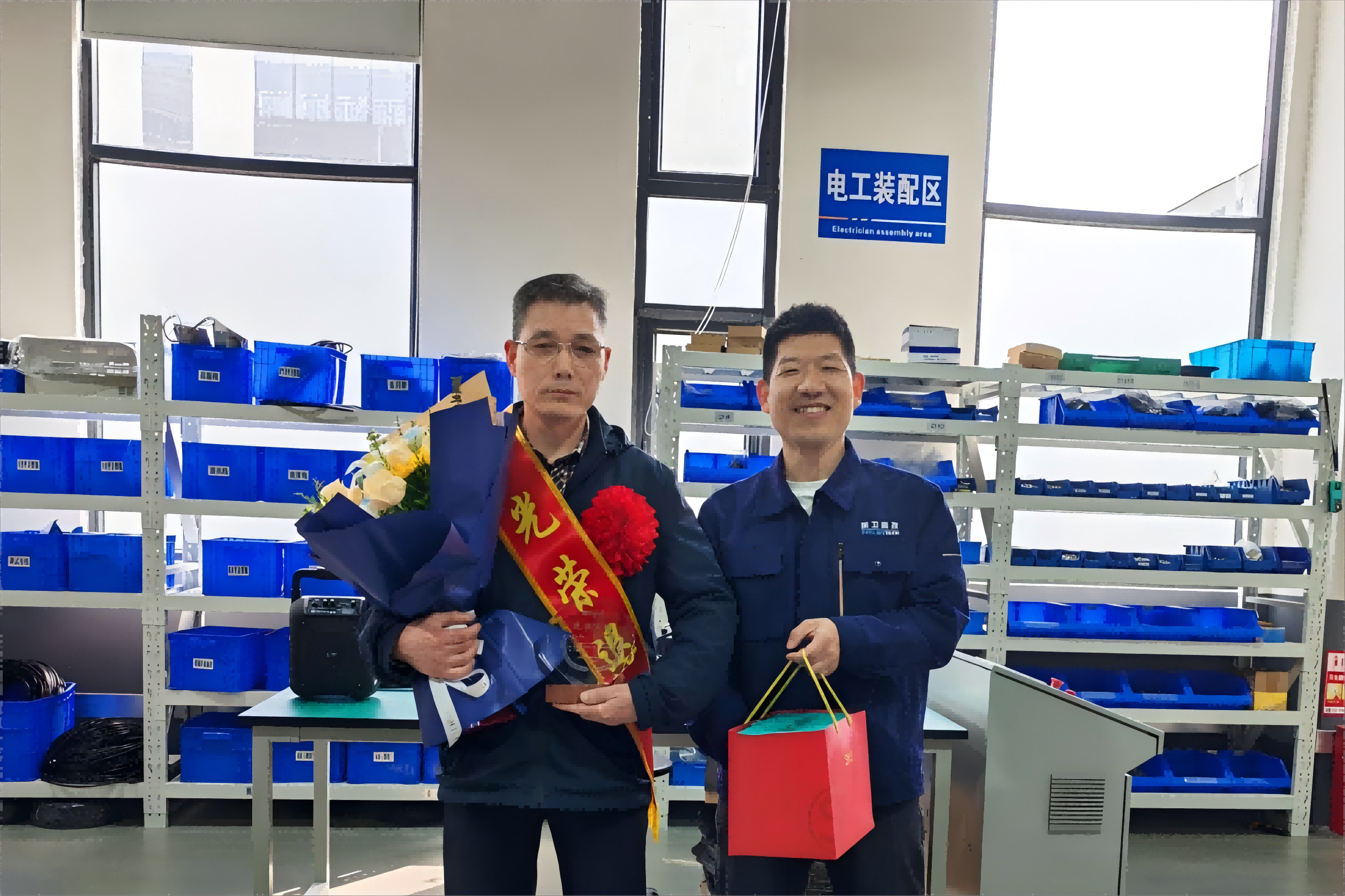 十载坚守,温暖相送|高师傅,退休快乐!导语在质卫科技装配车间,一场简单却满含心意的退休仪式温馨开启,部门同事们聚在一起,送别在公司坚守十年的老匠人——